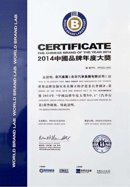 12月29日, 2014“中國(guó)品牌年度大獎(jiǎng)”頒獎(jiǎng)典禮在京舉行,北京汽車集團(tuán)有限公司(簡(jiǎn)稱北汽集團(tuán))榮獲中國(guó)品牌年度大獎(jiǎng)。這也是北汽集團(tuán)2014年自躋身《中國(guó)500最具價(jià)值品牌》后再度榮獲品牌大獎(jiǎng)。