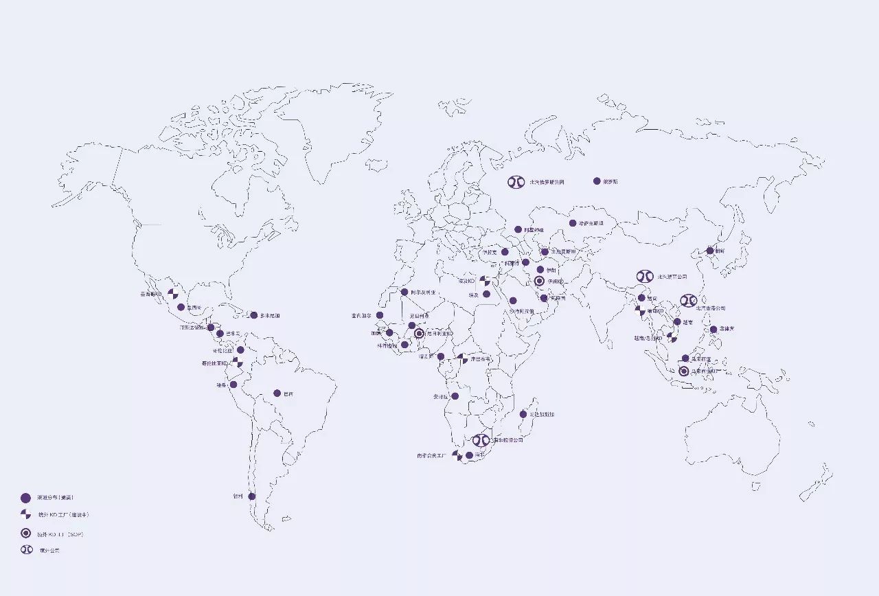 北汽集團響應國家“一帶一路”倡議,在海外不斷落子,努力實現(xiàn)“世界北汽”的戰(zhàn)略構(gòu)想。北汽集團已在全球47個國家搭建銷售網(wǎng)絡154家、建設海外產(chǎn)業(yè)基地4家、境外公司7家、KD項目22個。